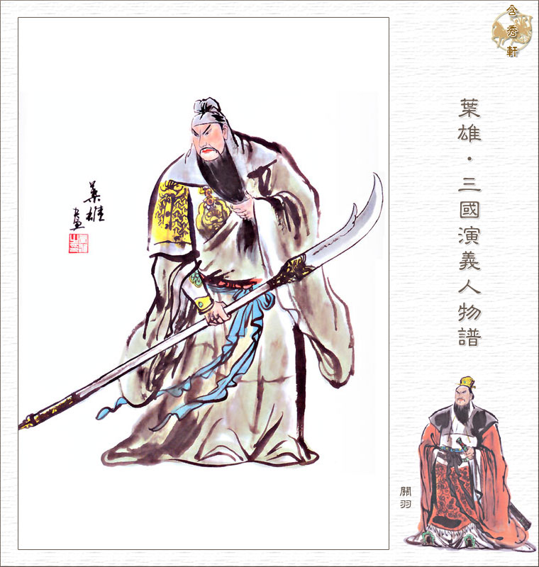 关羽,字云长,原字长生,河东解良人,在三国演义里提到他因本处势豪倚势凌人,关羽杀之后逃难江湖,于184年黄巾起义时逃至涿郡(河北涿县)遇到刘备在召集人马,便跟张飞一起追随刘备,当时只有23岁。公元219年,刘备自立汉中王,封关羽前将军,在小说中也是那时封关羽为五虎上将之首,命其攻打曹仁守卫的樊城,曹操派于禁、庞德率领七军援助曹仁,结果在樊城北十里罾口川处被关羽水淹七军,于禁投降,庞德被关羽斩杀,自此关羽威震华夏。曹操曾因欲避关羽锋芒而从许昌迁都,后因司马懿、蒋济力阻并建言鼓动孙权袭击关羽后方。在此之前孙权曾派使者到关羽处,希望娶关羽之女为子媳,而关羽没有遵照诸葛亮"东和孙权,北拒曹操"之言,侮辱来使,惹孙权大怒。