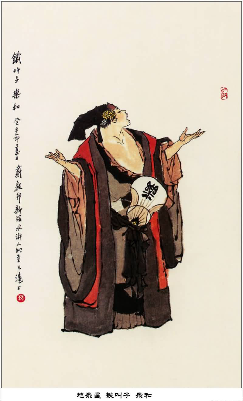 乐和,原是登州城里看守监狱的小牢子,祖籍茅州人氏。乐和聪明伶俐,各种乐曲,一学着便会,又有一副好噪音,人称"铁叫子乐和"。乐和的姐姐嫁给了孙立为妻,乐和便借姐夫的脸面做了小牢子。解珍、解宝兄弟被毛太公陷害,打入登州城牢里,乐和联系孙立、孙新、顾大嫂等打破牢笼,救了解家兄弟,一同上了梁山,做了军中走报机密步军头领第一员,排梁山第七十七条好汉。宋江征讨方腊正要出征,乐和被五都尉指名要走,留守京都。